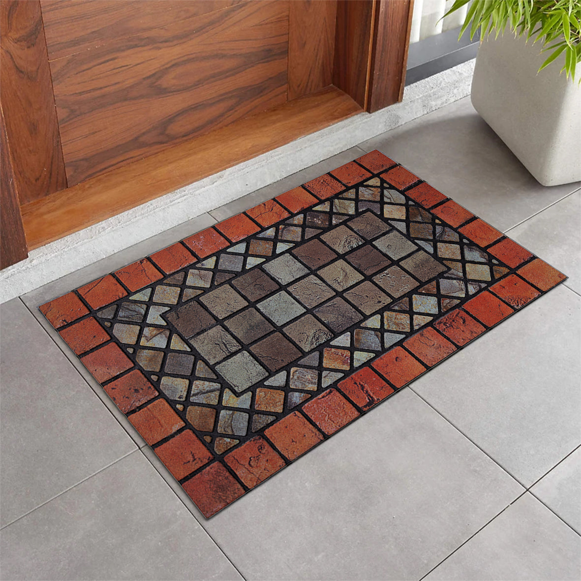 Nicoman Elegant Tile Effect Doormat - Red Edge