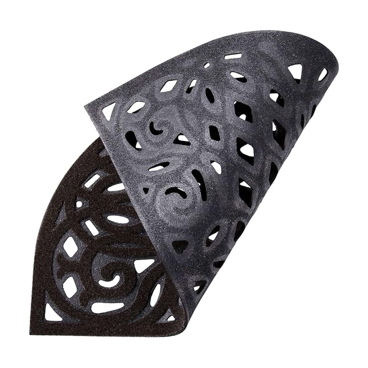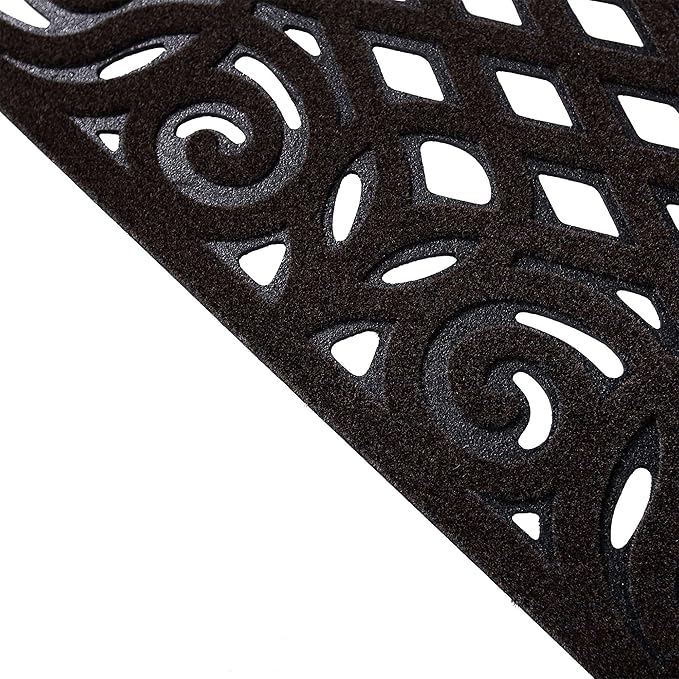The decorative top surface of our Victorian-style Eco Halfmoon Doormat features high-definition moulding and deep channels that trap dirt, ensuring that your footwear stays clean and your floors remain spotless. Its water-absorbent properties make it an excellent choice for rainy days, while its heavy-duty construction guarantees long-lasting durability. The open backing allows water to run away, preventing it from pooling up and causing damage.
