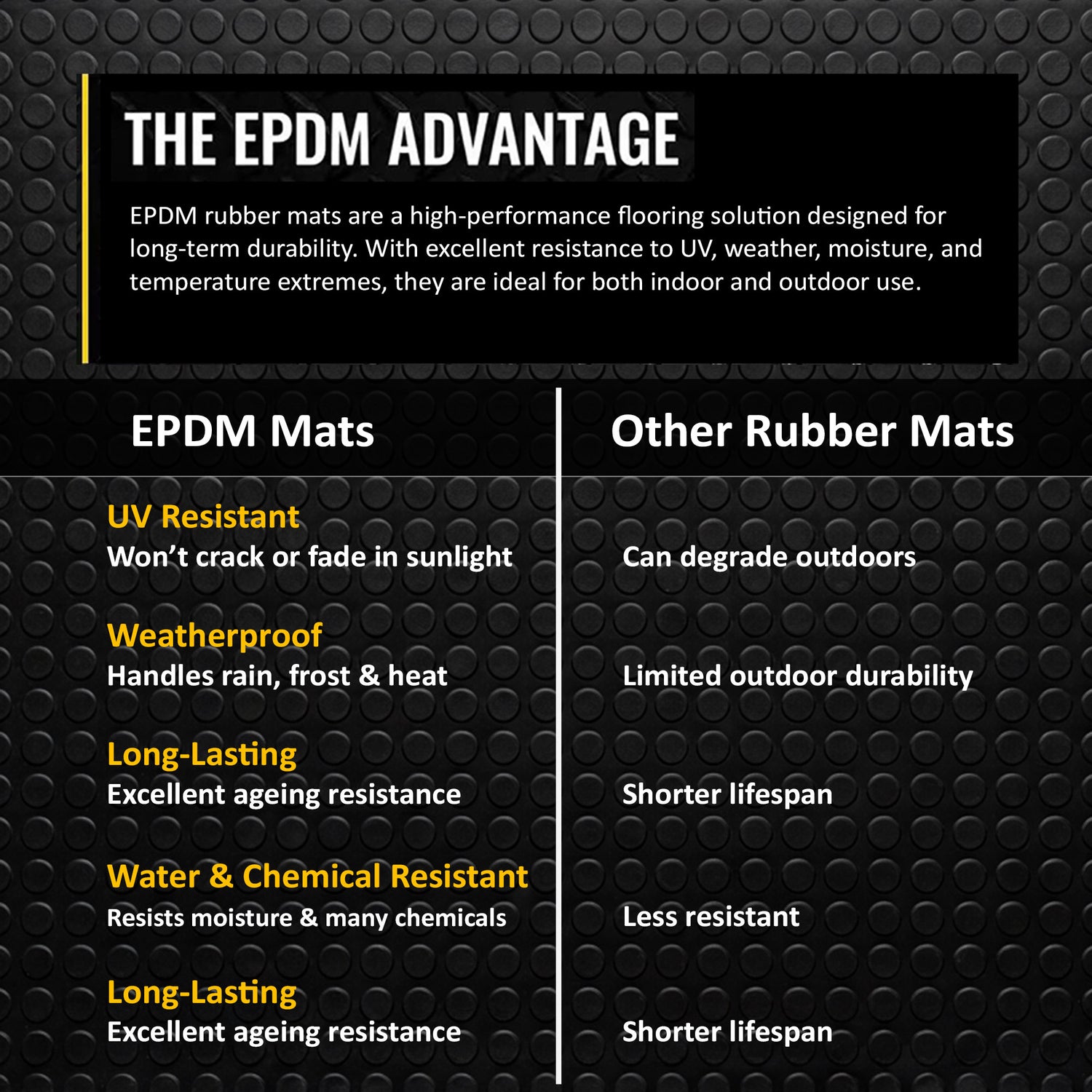 - Made from high-performance recycled EPDM rubber